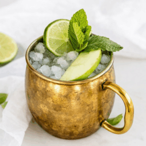 Versa 50 ml di vodka in un bicchiere copper mug o highball. Aggiungi 10 ml di succo di lime fresco per una leggera acidità. Completa con 120 ml di Kombucha, dunque riempi di ghiaccio, mescola e guarnisci con una fetta di lime e un rametto di menta per un profumo fresco.